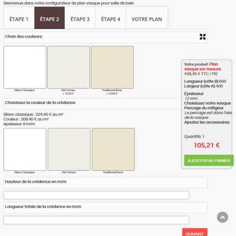 - Saisie de dimensions en fonction des options choisies exemple : crédence