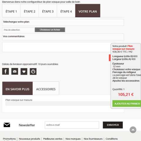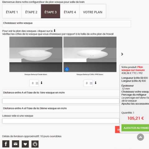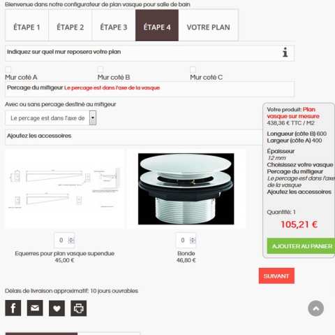 - Affichage du prix au m² , du prix final et du délais de livraison avant ajout au panier